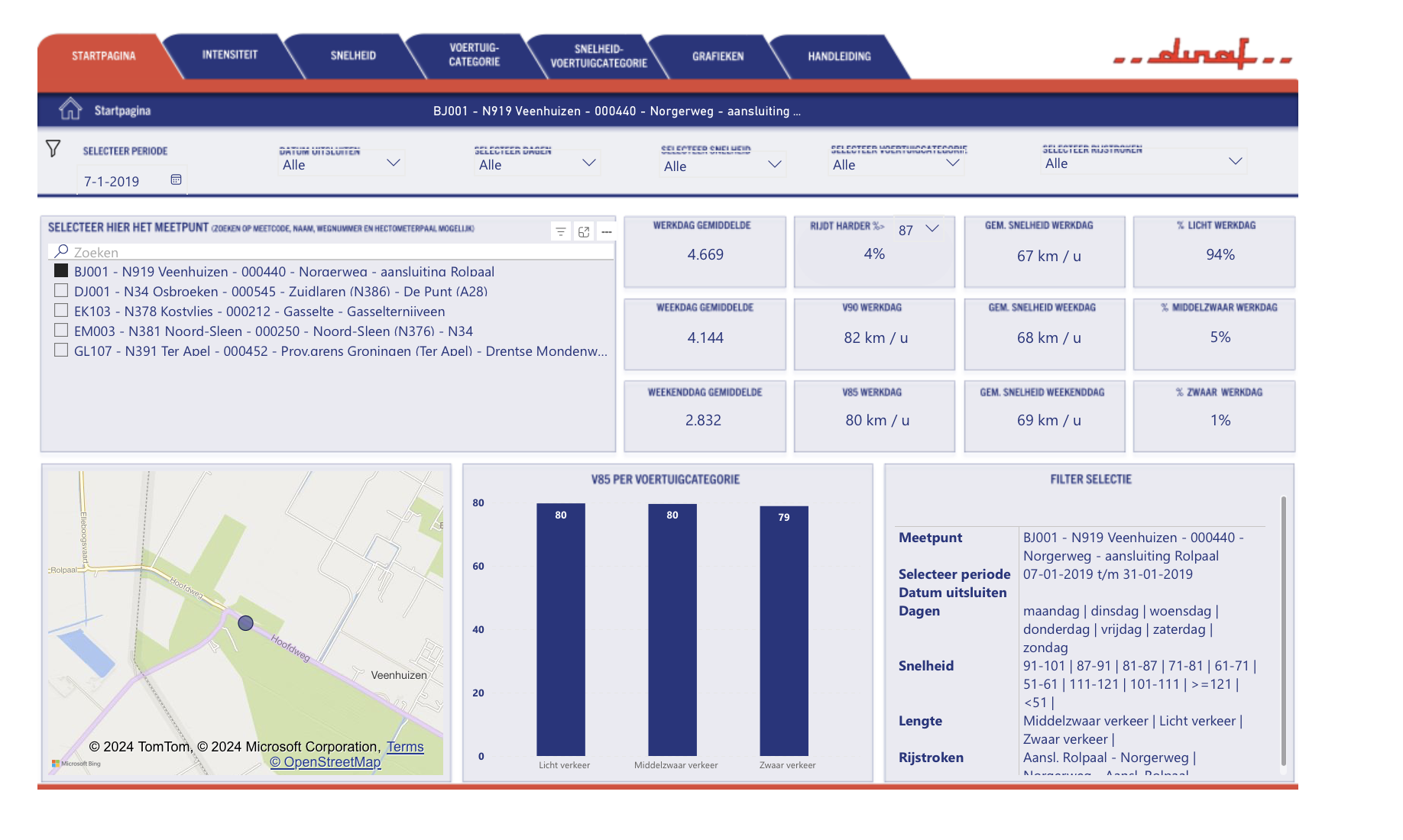 Met het volledige dienstenpakket van Dinaf Traffic Control B.V., bestaande uit hoogwaardige analyseapparatuur, geavanceerde software en deskundige ondersteuning, voorzien wij overheden, provincies, gemeenten en bedrijven van betrouwbare verkeersdata. Deze data vormt de basis voor onderbouwde besluitvorming op het gebied van verkeersveiligheid, doorstroming en duurzaamheid.